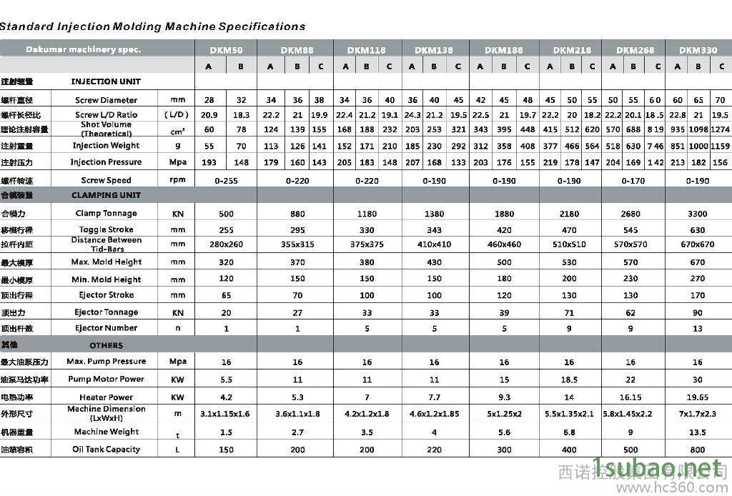 從50噸 到1600噸。高速注塑機118噸到780噸,雙色機從268噸到500噸……