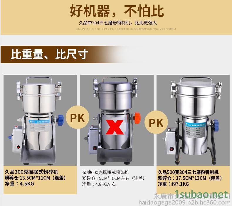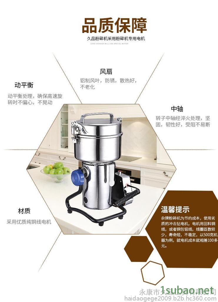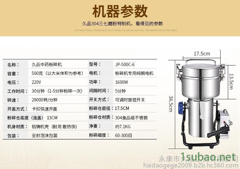 久品牌500C-6克中藥材粉碎機超細研磨機五谷磨粉機304不銹鋼打粉機家用小型