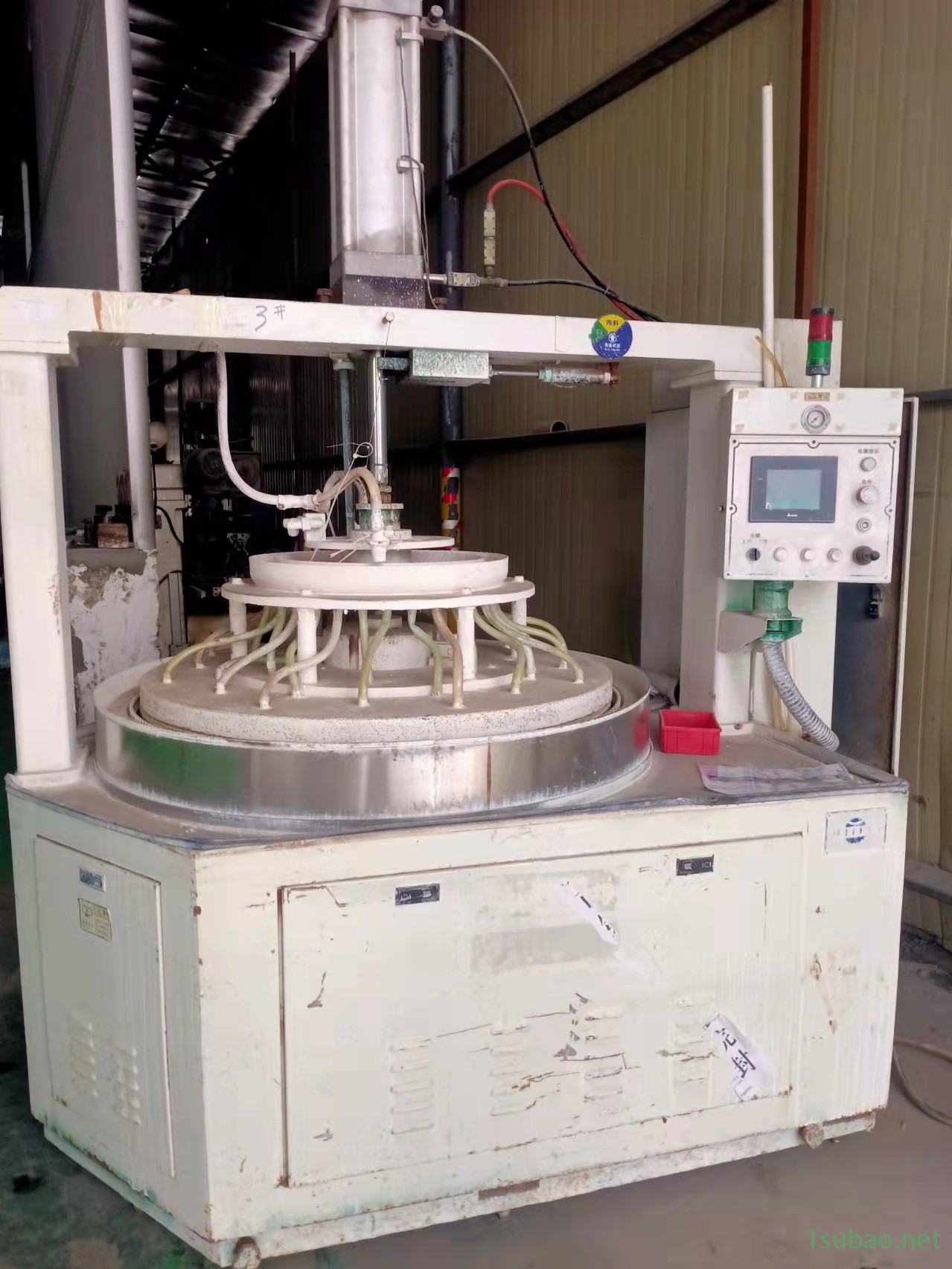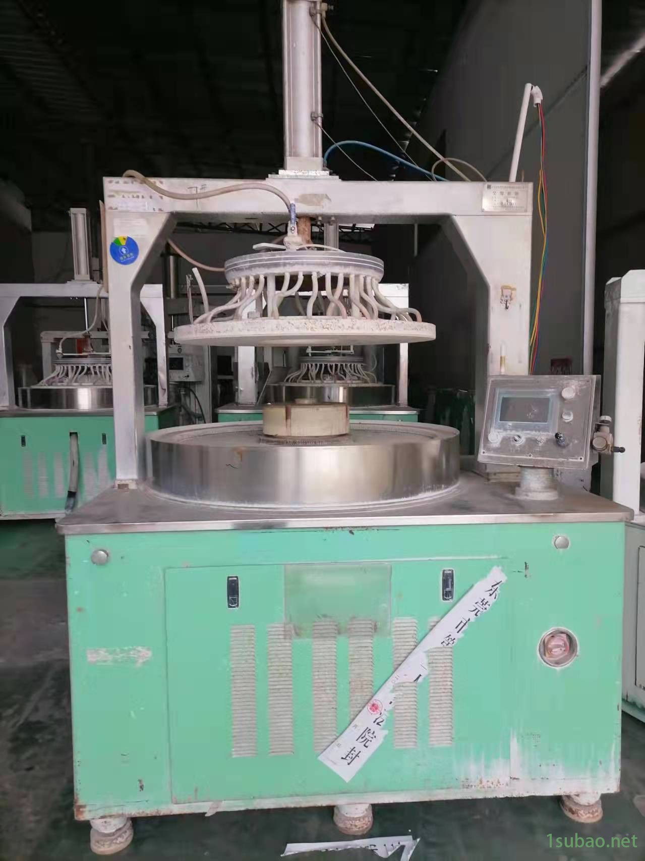 1.本研磨機為單面精密研磨拋光設備,被磨、拋工件放于下研磨盤上,上下研磨盤相對或同向轉動,工件由齒輪轉動載體使工件自轉或公轉,通過氣缸對上磨盤施壓,工件與研磨盤作相對運動均勻磨擦,來達到對工件的研磨拋光目的。