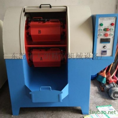 離心式研磨機是利用行星傳動的機理,促使工件和磨料在公轉和自轉的過程中作強制流動,從而對工件實施表面微切削加工。它的特點是工件和磨料的磨擦力度較大,磨削力較強,適用較硬金屬表面拋光。選用天然橡膠或聚氨脂作為滾筒的內襯材料。60L以上機型配有電動御料機構,減輕了勞動強度,簡化了出料過程。離心光飾機特點 :1、采用行星傳動方式,利用離心運動的原理,光飾光整效率高,提高工效10-20倍。2、適用批量中小型的工件光飾光整加工,特別適用具有異型腔孔及熱處理后的工件。3、噪音小、操作方便。本機器采用行星傳動方式,利用離心運動原理。有4個 6角滾筒裝載于料斗中(料斗固定裝載在轉動盤上;60型以上滾筒固定在轉動盤上。),當轉動盤轉動時,滾筒以逆方向轉動。將工件、研磨石、水與拋光助劑放進滾筒后,將滾筒予以固定時,物體被離心力轉動,此時物體受滾筒槽的強壓力,從而使得工件與磨料、助劑產生快速、均勻的摩擦;達到表面處理的要求。快速研磨光飾從而保證工件原有形狀、尺寸不受變化。行星式滾拋機較其它設備上的優勢:快捷、特別是針對異形零件的加工 加有效。1、它適用中小型的工件光飾、光整加工,特別適用有異型腔孔及熱處理后的工件。2、研磨機有30/60/80等型號機器,研磨滾筒內襯有橡膠和PU兩種膠體;研磨滾筒裝載有水平式和傾斜式兩種;鏈條傳動、同步帶傳動和齒輪傳動三種不同傳動方式,另有調速電機調速和變頻調速。3、此機器噪音小、操作簡便。