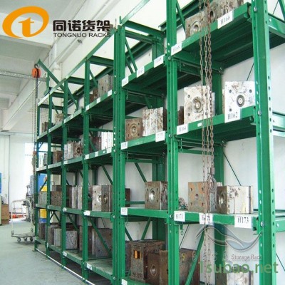 用于存放中小型模具,頂部選配手拉葫蘆移動車,便于模具的起吊和存放,抽屜板下設置有滾輪軌道,使重載依然能用很小的力輕松來回拉動,通常每層承載小于2000KG;
